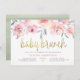 Convite Rosas rosa e Chá de fraldas Dourado Bebê Brunch ve