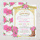 Convite Rosas rosa e Dourada Boot Floral Charro Quinceaner