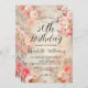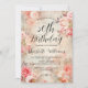 Elegante 50º convite de aniversário com rosas cor-de-rosa e um fundo de papel com tema antigo. Modelo personalizado que você pode personalizar com seus detalhes de festa ou celebração.