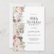 Um belo convite de festas feminino para comemorar um 80 no estilo elegante, este design floral irresistível é bordado em rosas cor-de-rosa charmosas, flores misturadas e calçadeiras Todo o texto pode ser personalizado para sua informação partidária, incluindo a idade de convidado de honra.