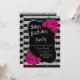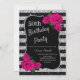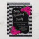 Elegante prata e listras pretas brilham e rosas cor-de-rosa convite de aniversário para mulheres de qualquer idade. A idade pode ser alterada para qualquer idade. O texto pode ser alterado para qualquer coisa para ajustado do seu evento. Fontes, cor da fonte e texto são completamente personalizáveis! A forma e o tipo do papel podem ser personalizados para ajustado do seu orçamento e sabor!
