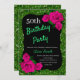 Glitter verde elegante e convite de aniversário rosa para rosas para mulheres de qualquer idade. A idade pode ser alterada para qualquer idade. O texto pode ser alterado para qualquer coisa para ajustado do seu evento. Fontes, cor da fonte e texto são completamente personalizáveis! A forma e o tipo do papel podem ser personalizados para ajustado do seu orçamento e sabor!