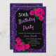 Glitter roxo elegante e convite de aniversário rosas rosa para mulheres de qualquer idade. A idade pode ser alterada para qualquer idade. O texto pode ser alterado para qualquer coisa para ajustado do seu evento. Fontes, cor da fonte e texto são completamente personalizáveis! A forma e o tipo do papel podem ser personalizados para ajustado do seu orçamento e sabor!