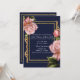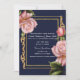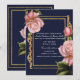 Convite Rosas Rosas Azuis-Marinho e Dourado Moderno Casame