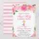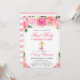Este convite elegante para a Primeira Comunhão apresenta rosas cor-de-rosa suaves, folhagens delicadas e acentos dourados espalhados emoldurando um layout luminoso e atemporal. Uma cruz dourada com um pequeno detalhe floral adiciona um toque significativo e reverente, enquanto a borda listrada de rosa e branco traz um toque doce e moderno. A combinação de letra cursiva graciosa e tipografia serifada clássica cria uma apresentação polida e feminina perfeita para celebrar este sacramento especial. Totalmente personalizável com os detalhes do seu evento, este design combina-se lindamente com papelaria floral correspondente para um conjunto de Comunhão coeso.