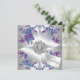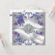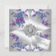 Convite de casamento personalizável com rosas roxas e verde com laço de acabamento em diamante.