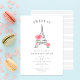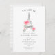Um convite de festas elegante, na moda e minimalista Sweet 16 com um tema Paris, com uma torre Eiffel coberta de rochas (este é um efeito digital) e três rosas de aquarela, uma simples tipografia e faixas delicadas e desenhadas à mão no verso.