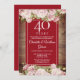 Desenhado para combinar com a nossa coleção de aniversário em rubi Rosas Rústicas. Com grinaldas de rosas num fundo de painéis de madeira rústicos, este convite de aniversário vintage pode ser personalizado com as informações da sua celebração especial de 40 anos de aniversário, com um fundo rubi no verso. Desenhado por Thisisnotme©