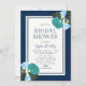 Convite Rosas Teais Elegantes Chá de panela Floral