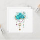 Chave de ouro antiga com rosas de turquesa de tendência, decoradas com folhas de ouro branco e miçangas cor-de-rosa e azuis. Cor agradável. Rosas de turquesa. Ouro branco. Tifania azul.