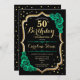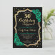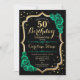 50º Convite de aniversário. Elegante design verde esmeralda floral com ouro brilhante falso, rosas e fontes de script. Perfeito para uma comemoração de dia das mulheres na moda. Pode ser personalizado para qualquer idade! Impressos convites Zazzle ou modelo de impressão digital instantânea para download.