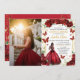 Convite Fotográfico da Princesa Floral Quinceañera, Rosas vermelhas Chic