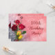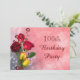 Na moda, personalizado, elegante Convite de aniversário 100. Na moda e glamourosos, personalizados / personalizados 100ª celebração de festas de aniversário, convites para mulheres. Com 3 belas meias rosas vermelhas abertas e 2 buquês amarelas, fotografias com miçangas brilhantes e imagens de flores impressas num fundo branco bonito, cor-de-rosa. Estes convites para festas de aniversário florais, sofisticados e modernos são decorados/impressos em ambos os lados/têm impressão frente e verso e são particularmente adequados para eventos de primavera e verão, mas podem ser usados para qualquer estação. Estes convites modernos, modernos, contemporâneos, clássicos e românticos são o convite perfeito para a festa de aniversário de uma mulher. Se precisar de assistência para personalizar o seu produto, entre em contato comigo pela loja e terei todo o prazer em ajudar.
