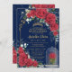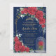Personalize este adorável convite floral de rosa encantado, de forma fácil e rápida, basta pressionar o botão Editar Usando Design Tools para reorganizar e formatar o estilo e posicionamento do texto. Apresentando rosas vermelhas vibrantes impressionantes e uma rosa vermelha em uma armação, colocada sobre um fundo azul marinho com sotaques dourados elegantes. Este convite é perfeito para Quinceañeras, Sweet 16, 18 aniversários, Debutante Balls, Princesas Partidas, e muito mais! Itens correspondentes estão disponíveis em nossa loja. (c) O feliz Cat Studio.