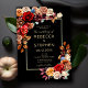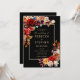 Um convite de casamento moderno e elegante com um tema de rosas vermelhas modernas para o outono/outono, com flores de aquarela e verde. Rosas vermelhas e cravos vermelhos profundos contrastam com mães de cobre e laranja, borrifadas com rosas bege e outras flores e verde nas cores da queda: ferrugem, laranja queimada, terracota etc. e todo o conjunto faz um design de classe para um casal moderno.