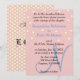 Lindo fundo cor-de-rosa pastel com bolinhas creme moderno casamento. Nomes do Noivo e da Noiva e monograma elegante em azul suave. Lado posterior tem fundo rosa com padrão de bolinhas creme. Personalize com seus detalhes especiais. Juntos no Amor está escrito em texto preto elegante no verso. Design Original por TamiraZDesigns.