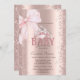 Convite Rose Gold Confetti Pink Bow Crown Baby Shower