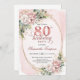 Convite Rose Gold Glitter 80th Birthday Floral Invitation