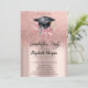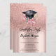 Convite Rose Gold Glitter Floral Grad Cap Bow Graduation