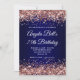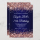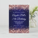 Convite Rose Gold Glitter Navy Blue Ombre 75th Birthday