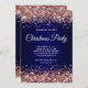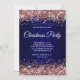 Convite Rose Gold Glitter Navy Blue Ombre Christmas Party