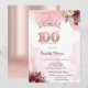Convite Rose Gold Glitter Roses Crown 100th Birthday