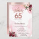 Convite Rose Gold Glitter Roses Crown 65th Birthday Party