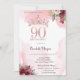 Convite Rose Gold Glitter Roses Crown 90th Birthday Party