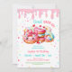 A rosquinha cresce! Convide seus convidados para a Festa de aniversário de sua garotinha com este adorável convite de rosquinha, com rosquinhas bonitas e borrifadas em cores arco-íris, com gotejamento de glacé rosa. Personalize facilmente o texto e se divirta. - Kate Eden Art