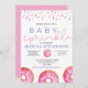 Este chá de fraldas personalizável apresenta rosquinhas cor-de-água rosa com aspersores. As cores são perfeitas para um chá de menina.