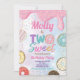 Convite Rosquinha Dois segundos aniversários cor-de-rosa P