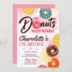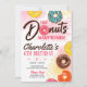 Prepare-se para celebrar com uma festa de aniversário temática de rosquinha! Este convite divertido e colorido apresenta rosquinhas adoráveis e um fundo rosa doce.