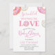 Esfregue as mamães para convidar os entes queridos para um chá de fraldas com este convite divertido. Apresentando rosquinhas cor-de-rosa e aspersores para celebrar as meninas a caminho. Perfeito para o café da manhã ou para o chá. Preencha o texto usando a caixa "Personalizar" no lado direito do item ou clique no link azul "Clique para personalizar mais" para organizar o texto, alterar as fontes e cores e também adicionar informações ou imagens adicionais a este design.