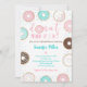 Este convite apresenta rosquinhas cor-de-rosa e azuis bonitas.