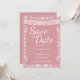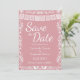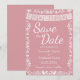 Dê aos seus convidados um belo aviso prévio com este elegante cartão de Save the Date de casamento inspirado no México! Com um lindo texto "Save the Date", nomes dos noivos, data do casamento, uma faixa de papel picado branco, uma borda floral de arte popular intrincada e dois passarinhos na parte inferior sobre um fundo rosa suave e romântico. Uma primeira impressão impressionante que define perfeitamente o tom para a celebração do seu casamento estilo fiesta!