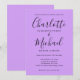 Com nomes de estilo característico, este convite de casamento elegante pode ser personalizado com suas informações em letras elegantes sobre um fundo de orquídea lavanda lilás. Você pode personalizar a cor do fundo para combinar com o tema do seu casamento. Criado por Thisisnotme©