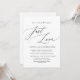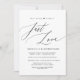 Planejando um anúncio de fuga romântica de casamento, após o GRANDE dia? Convide os convidados com este convite de casamento de roteiro moderno perfeito para recepção de fuga romântica. Adicione os detalhes da sua celebração na fonte / letra correspondente.