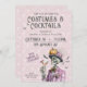 Este design de esqueleto inspirado em steampunk traz o talento gótico vintage para o entretenimento do Halloween. O esqueleto está vestido com um fato cor-de-rosa agudo com um chapéu de abóbora, gravata de arco e coquetel na mão, rodeado por morcegos e sotaques de teia. O trabalho de arte combina elegância escura com detalhes caprichosos, fazer perfeito para hospedar uma sofisticada festa "Figurinos e Cocktails". Ponha o tom para uma noite inesquecível com um convite assustador que os convidados adorarão.