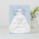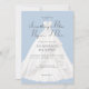 Suave e romântico, este design de convite de chá de noiva "alguma coisa azul antes de eu fazer" apresenta um vestido de noiva branco centrado em um fundo azul pálido sob uma camada transparente branca enevoada. Elegante, simples e romântico. Criado por Simply Farmhouse Press.