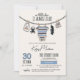 Linha de roupas azuis O chá de fraldas do Dia das Bruxas é convidado com sua pequena bib, seu traje, e calçados de bebês pendurados para secar em uma linha de roupas junto com uma aranha e um morcego acoplado à linha de roupas por pinos de roupas. A roupa do bebê tem faixas de cinza azuis e escuras. Os calçados de bebês têm pequenos pontos em cores iguais. E a bíblia do bebê apresenta um arco-íris inspirado no Dia das Bruxas com uma pequena abóbora. Tudo em um estilo desenhado à mão em cores azul e cinza do Dia das Bruxas!
