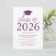 Convide convidados para comemorar o formando com nossos convites para a festa de formatura de 2023. Os convites apresentam um boné de formatura no topo com "Classe de 2023" exibido em letras roxas modernas. Personalize os convites adicionando o nome do formando, a escola e os detalhes da festa de formatura. A festa de formatura de tendências convida ao contrário para exibir um padrão de girino roxo e branco.