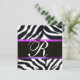 Convite ROXA PRETA BRANCA PELO DE ZEBRA MONOGRAMA, ametist