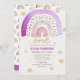 Convite Roxo Arco-Íris Estrelas Primeira Festa de aniversá
