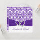 Este convite do chá do casal roxo e branco do damasco tem IMPRESSO na fita com um par de brilho IMPRESSO do FALSO e corações juntados jóias do diamante nele. Todo o texto é customizável e assim que é a escolha de papel. Se há algum outro artigo que você precisar de fazer seu evento extremamente especial, envie por correio electrónico por favor seu pedido a niteowlstudio@gmail.com. O envelope de harmonização, os cartões de agradecimentos, o porte postal, e os selos do envelope são mostrados abaixo.