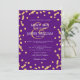 Convite Roxo de Confetti Dourado de Casamento Moderno
