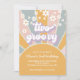 convite de primeiro aniversário inspirado no sol Groovy retrô com margaridas e fontes e cores estilo anos 70.