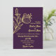 Convite de casamento simples único com flores de ouro românticas e elegantes em fundo roxo PARA PRODUTOS MAIS CORRESPONDENTES clique na coleção acima ou entre em contato comigo.