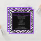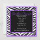 Este é um convite perfeito do impressão da zebra para toda a idade. Podem ser um grande convite de festas ou aniversário de 30 anos do doce dezesseis também. Tem o impressão preto & branco da zebra aparado em uma beira roxa brilhante. Personalize com sua informação do partido no centro. Verifique para fora o muito outro design, tamanhos e cores em nossa loja.