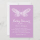 O roteiro extravagante da fita e uma mão esboçaram o acento da borboleta este roxo, convite do chá de fraldas.