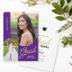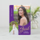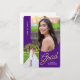 Convide amigos e familiares para o seu "Partido Formando" com o convite moderno, 2 fotos, roxo e ouro. O design apresenta fotos com uma borda arquivada. O texto personalizado, no verso, permite que você personalize com os detalhes do seu partido.